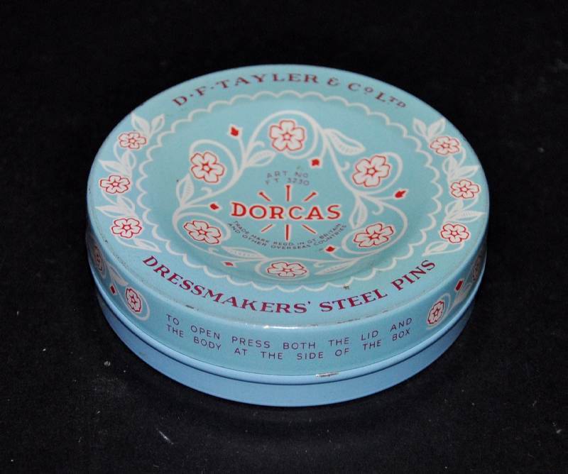 Gammel Knappenåle-æske D.F. Tayler & Co. - Dressmakers' steel pins ø 6,6 cm. - Højde 2 cm. Nb! Med lettere brugsslitage Pris 45 kr. Varenr. H003 |